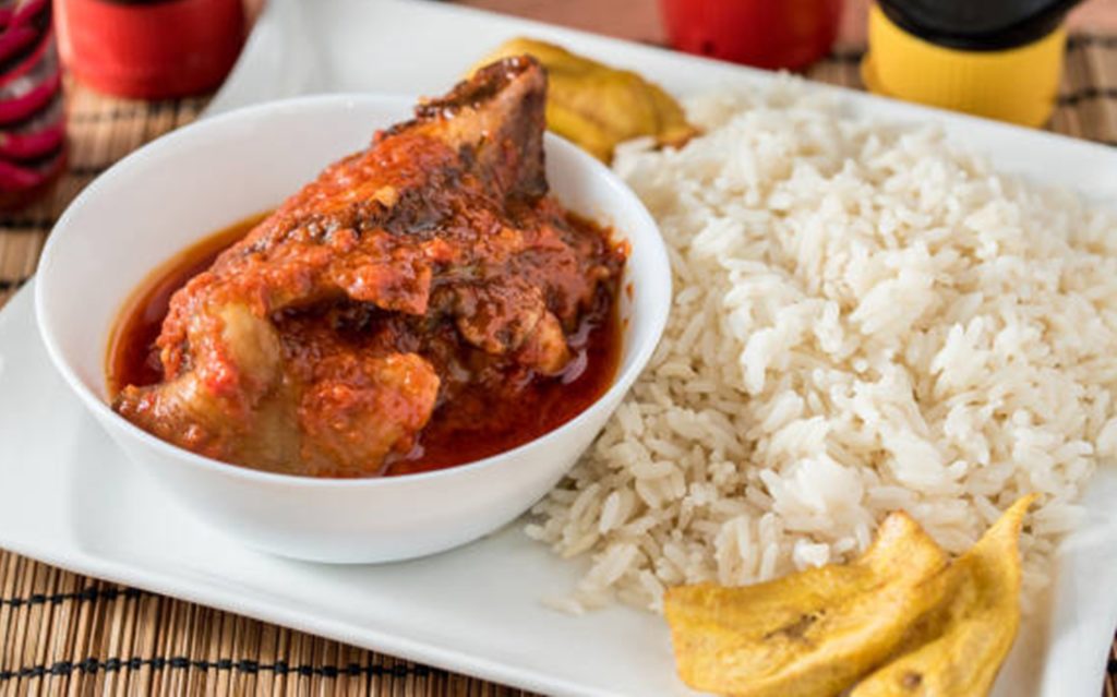 A Ghanaian dish of rice and beans commonly eaten for breakfast or lunch.